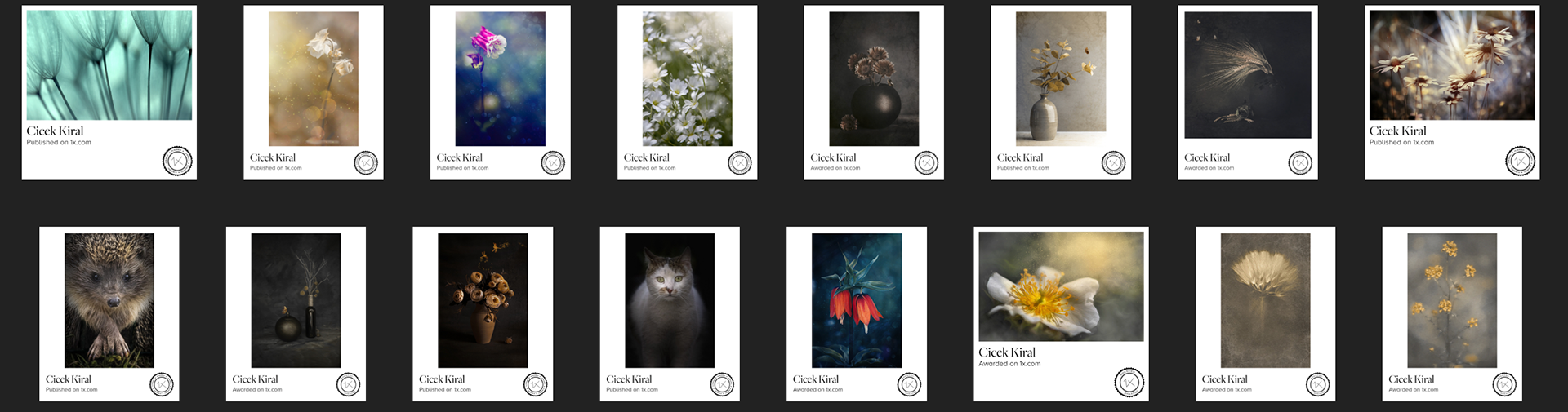 Merhaba ve sanatsal yolculuğuma hoş geldiniz! Ben Çiçek, tutkuyla şekillendirdiğim dünyayı sizlerle paylaşan bir fotoğrafçıyım. Bugün, benim için çok özel bir başarı olan 1x.com'dan aldığım 400'den fazla sertifikayı sizinle paylaşmanın gururunu yaşıyorum.